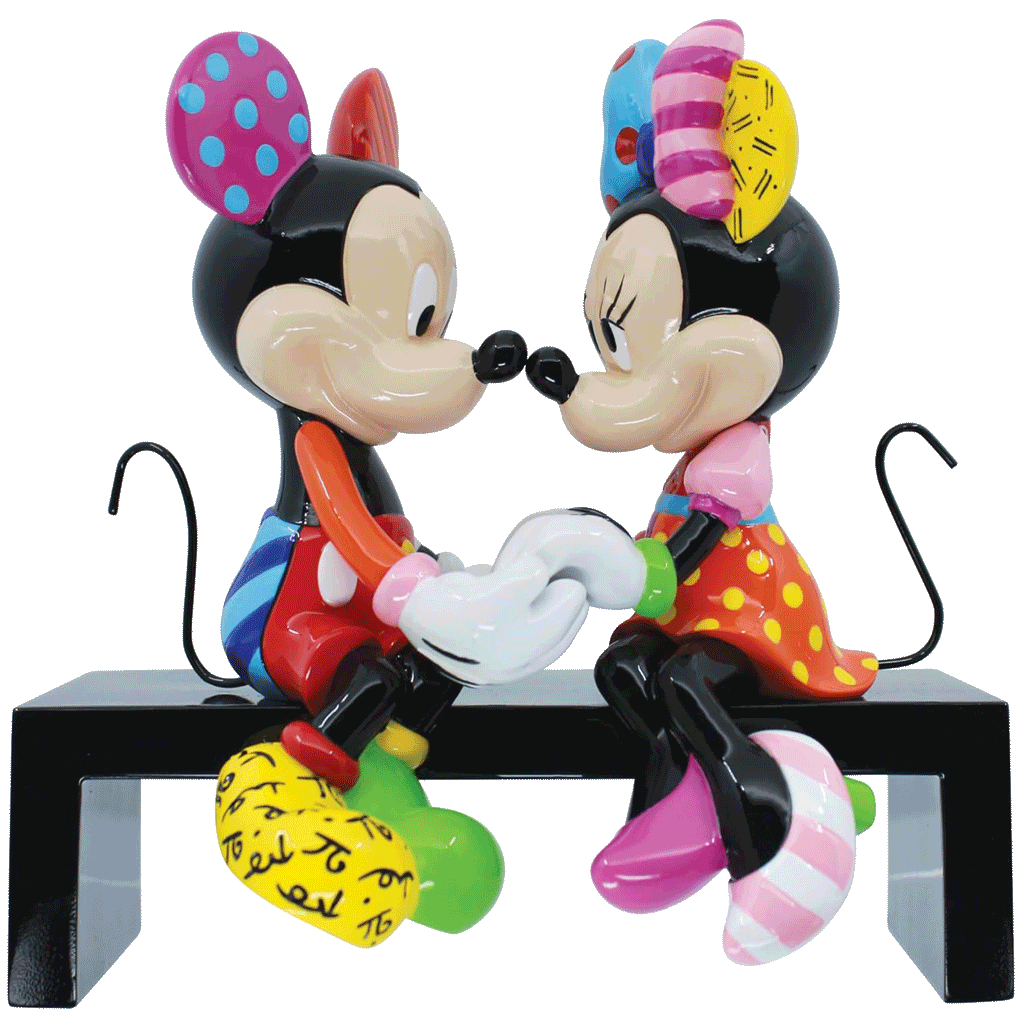 Celebrate romance and timeless charm with the Mickey and Minnie Mouse Love Figurine from the Disney by Britto collection. This heartwarming piece captures Disney’s most beloved couple seated face-to-face, holding hands in a sweet moment of affection. Their playful expressions and iconic silhouettes instantly evoke the magic of Disney love stories.