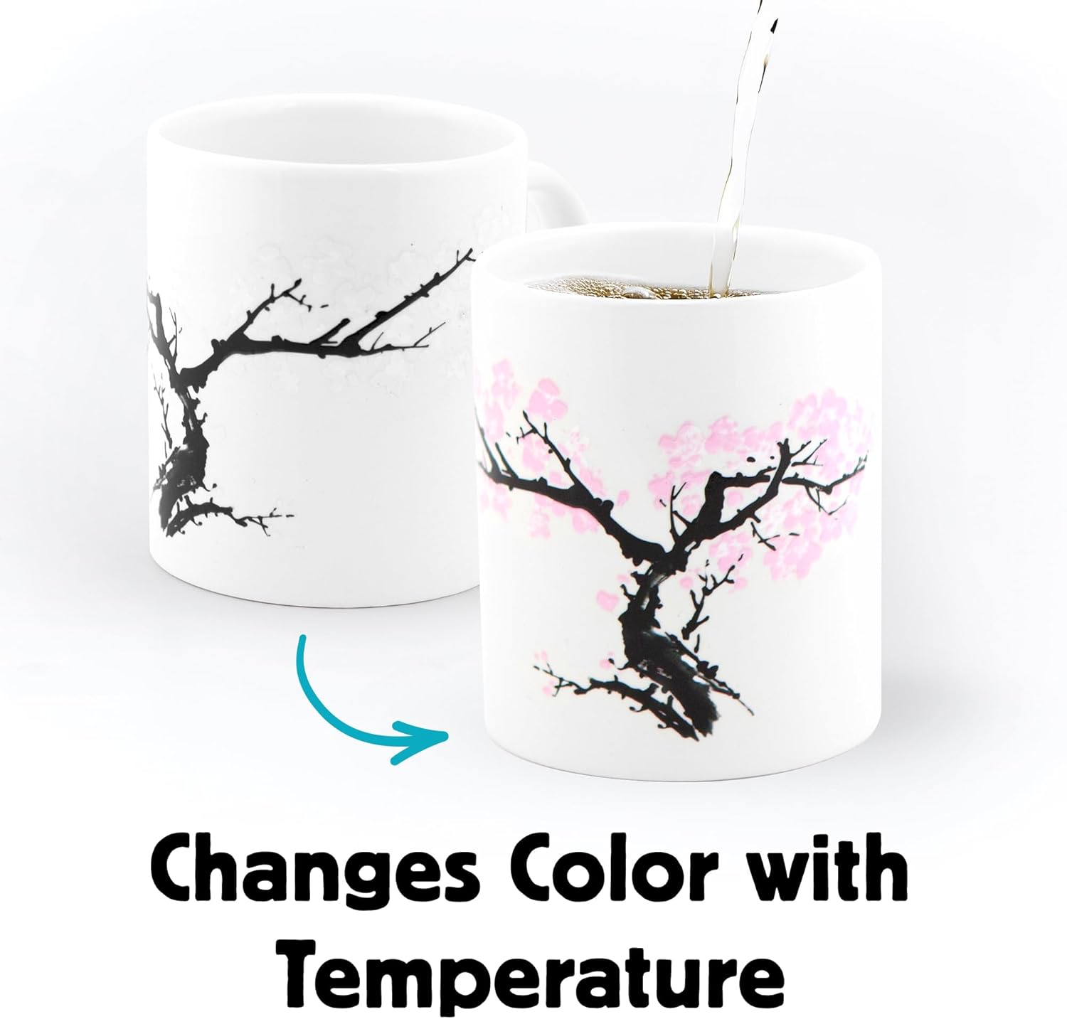 Enjoy a Little Whimsy with your favorite coffee, tea, or hot cocoa! This mug is the perfect way to add an extra shot of happiness to your morning routine so you can start your day off right. Heat Reveals a Fun Design. This morphing mug features thermographic ink that creates a fun color-changing effect depending on its temperature; when you pour your favorite hot drink into the cup, blossoms will bloom on the barren tree before returning to its original state as the mug cools.