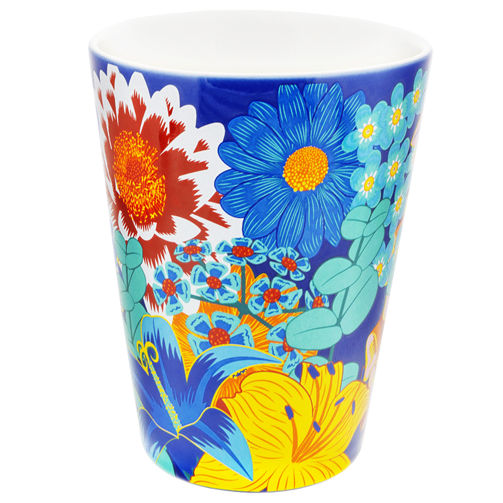 Let’s think big about this mug! Colorful and blooming, it is perfect for your coffee or to keep the pens on your desk, it will be your go to mug! It is even a perfect vase or planter like the one in the alternate image.
