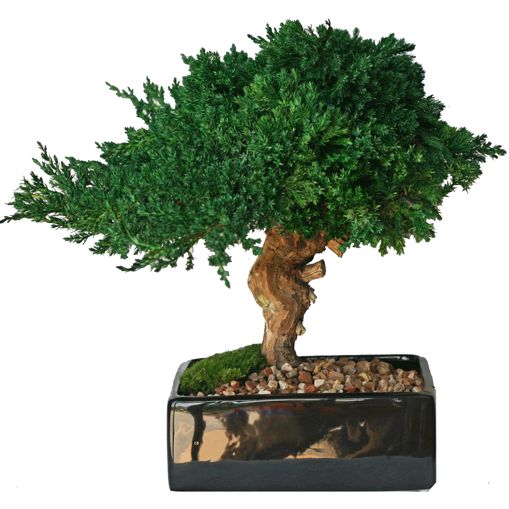 - Materials: Real preserved Monterey bonsai greenery with glossy black ceramic planter with natural gravel and mood moss